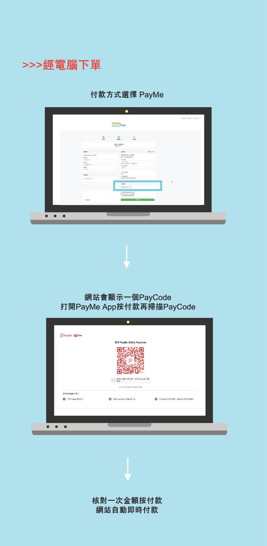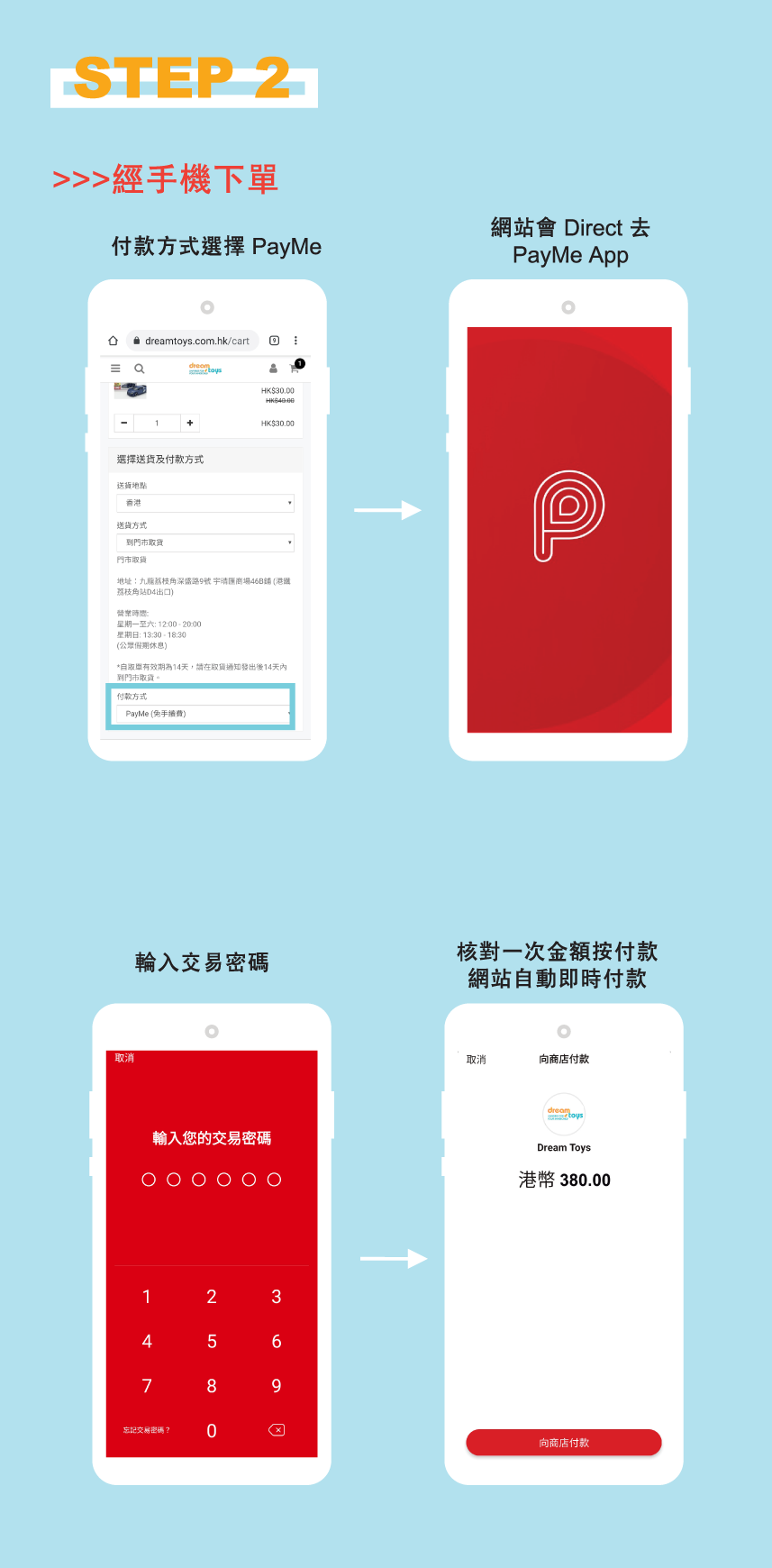 5. 成功付款後請截圖,並開啟訂單電郵內的 "訂單連結" ,於「店家和顧客訂單通訊」上傳 "轉賬截圖" 通知本店。